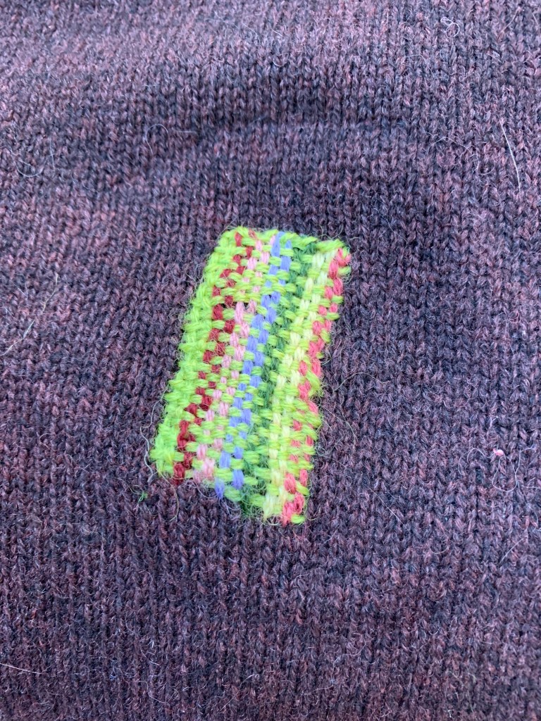 All in all, I have to say I’m not the best candidate for “mindful mending.” I both understand and appreciate how one could find it peaceful and satisfying, but that doesn’t apply to those of us sorely lacking in patience. The fiddly nature of the Speedweve just made me anxious, so the whole thing felt like a chore. I will finish this project up (at some point), but hoping that my moth prevention regimen will intervene to save me from another “opportunity.”
